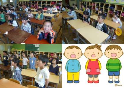 1年生はどのクラスも校歌の練習をしていました。