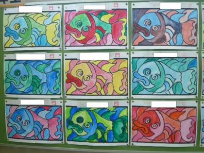 2年生と3年生の作品です。明日の授業参観で、ぜひご覧ください。