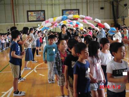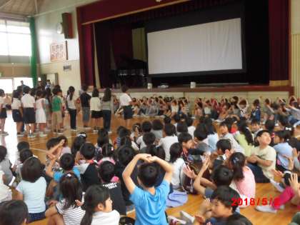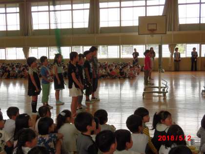 1年生を迎える会 1 公開日 2018/05/02 更新日 2018/05/02 学校行事 5月2日、体育館において1年生を迎える会を行いました。緊張した面持ちで入場した1年生ですが、2年生〜6年生が歌やクイズの出し物を披露し、嬉しそうに見つめていました。
