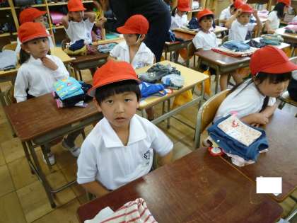 1の1は、体操服の着替え方や服のたたみ方を練習していました。