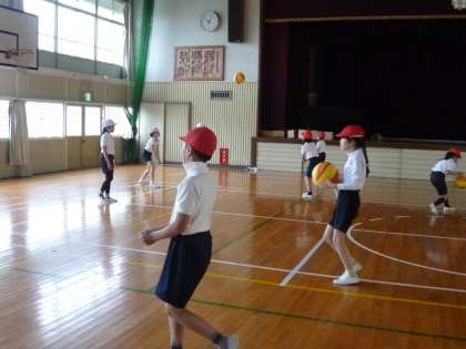 5の2は、体育館でソフトバレーボールの練習をしていました。