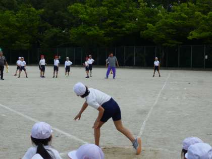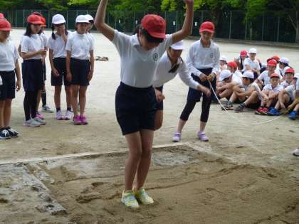 5年・6年合同で、体力テストを行いました。50m走・立幅跳び・ソフトボール投げの記録をとりました。