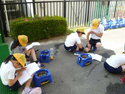 3の2は、理科の時間にホウセンカの観察をしていました。