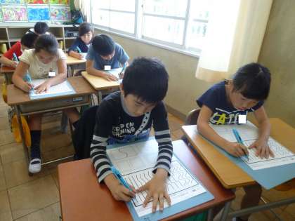 3の1は、図工でカッターナイフで紙を切る練習をしていました。