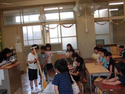食育の授業 公開日 2018/05/17 更新日 2018/05/17 1年 栄養教諭さんに、食育の授業をしていただきました。 給食はどこで、どのように作られているのかについて勉強しました。作る人や運ぶ人など、たくさんの人によって給食が食べられるということが分かりました。たくさんの人に感謝して、給食をいただけるとよいですね。