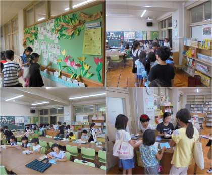 待ちに待った図書館が開館しました! みんな嬉しそうに本を読んだり借りたりしていました。