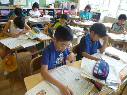 4の2は、社会で見学したことを新聞にまとめていました。