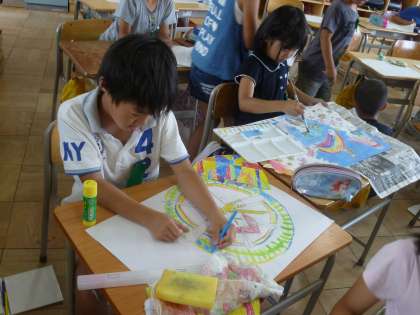 2の1は、図工で「ふしぎな たまご」の絵を仕上げていました。