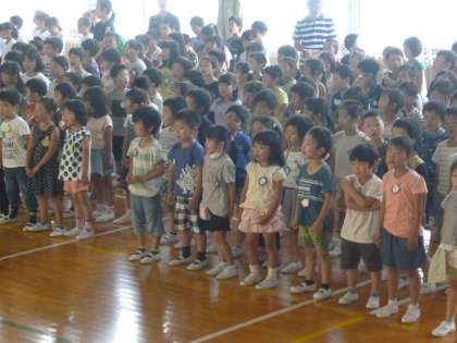 歌声集会 公開日 2018/07/02 更新日 2018/07/02 学校の窓 7月2日、体育館において、歌声集会を行いました。「きらきら星(英語バージョン)」と「全力少年」をみんなで歌いました。体育館の温度があがるぐらいのホットな時間になりました。
