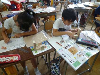 3の1は、図工で木の作品を作るための設計図を書いていました。