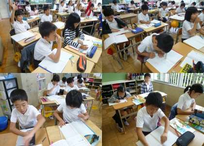 4年生は、どのクラスも算数で、わり算の筆算の学習をしていました。