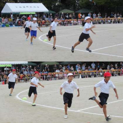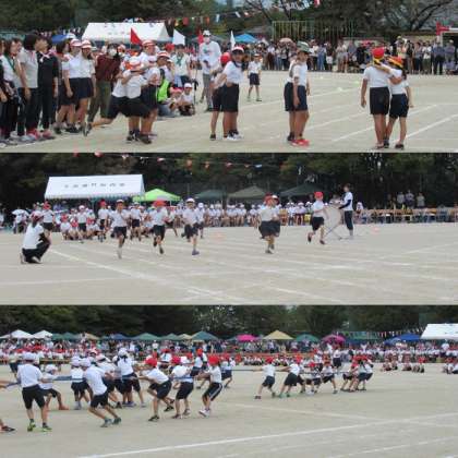 徒競走、地域ブロック別二人三脚、3年・4年の綱取りも、ハラハラしました。
