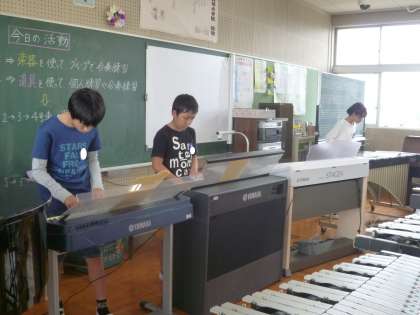 6の3は、音楽で合奏の練習をしていました。