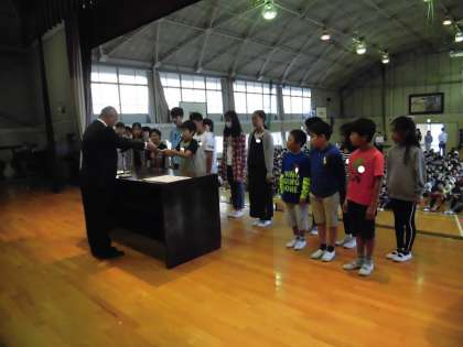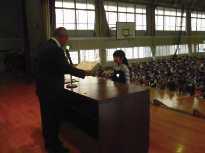 本日は、後期学級委員の任命式と表彰伝達が行われました。どの児童も返事が、しっかりできました。校長先生からは、「学級委員として頑張ってほしいということとクラスのみんなで学級委員を支えていきましょう」という話がありました。