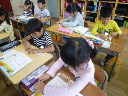 1の2は、数図ブロックを使って、算数の学習をしていました。