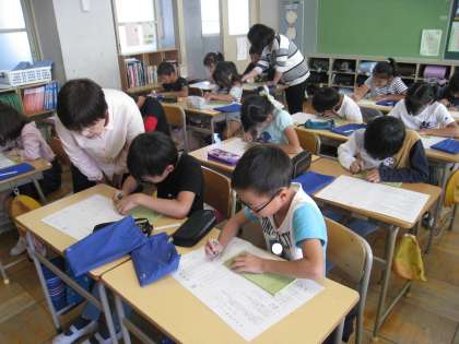 福祉体験(点字) 3年 公開日 2018/10/17 更新日 2018/10/17 学校の窓 3年生は、目の不自由な方が使われる点字について講師の先生から学びました。実際に自分の名前を点字で作っていました。