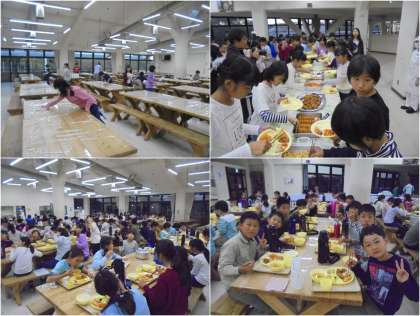 楽しみにしていた夕食です。食事係がテーブルを拭いてくれました。自分たちで準備をして美味しくいただきました。