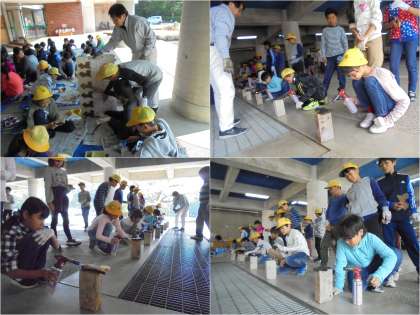 焼杉工作。所員の方の説明をしっかり聞いて、一生懸命作りました。お土産になる作品ができました。
