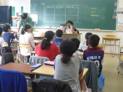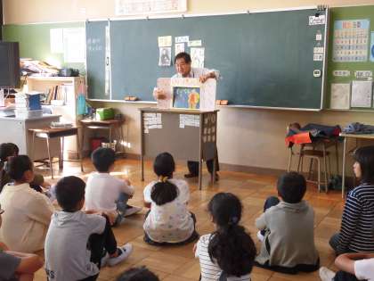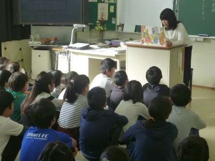 本日も昨日に引き続き読み聞かせをしていただきました。1年・2年・5年・6年・5.6.7組で行いました。学年にあった本や紙芝居を用意していただき、楽しく聞いていました。
