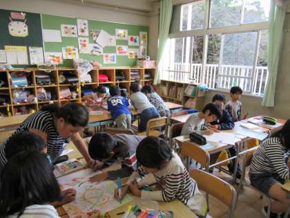 6年生が学年ごとに仕事を分担して教えていました。2年生〜5年生は、楽しそうに活動をしていました