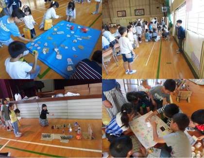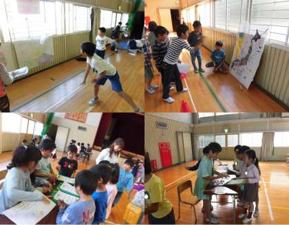 おもちゃまつり 2 公開日 2018/10/26 更新日 2018/10/26 学校の窓 紙コップレース・ボウリング・びっくり箱・ヨットカー等、アイデアいっぱいの遊びに1年生も大喜びでした。2年生は、年上として優しく接することができました。