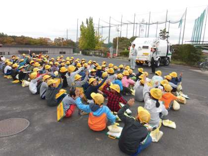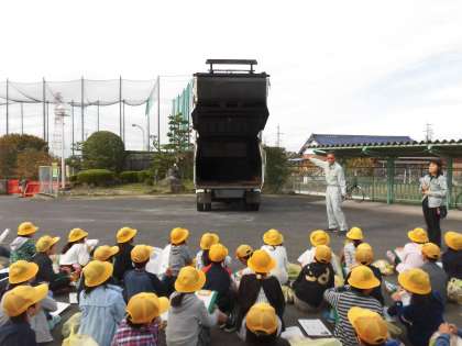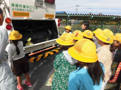 4年 青空教室 公開日 2018/10/31 更新日 2018/10/31 4年 本日,パッカー車に来ていただき,青空教室が行われました。春日井市のごみの量や,ごみの分け方についてなど話をしていただきました。子どもたちは知らなかったことが多かったようです。パッカー車を動かし内部を見たり,実際にごみ袋を投げ入れたりすることで,実感の伴った学習になったかと思います。