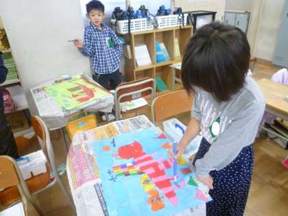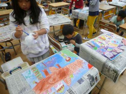 2の3は、図工で絵を描いていました。