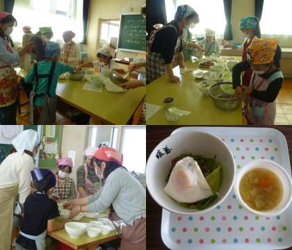 11月10日の土曜チャレンジ・アップ教室は、親子で料理を作りました。メニューは、手作りハンバーグのロコモコと野菜スープでした。親子で楽しく、美味しく料理ができました。