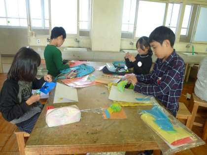4の3は、図工の授業でカードを作っていました。