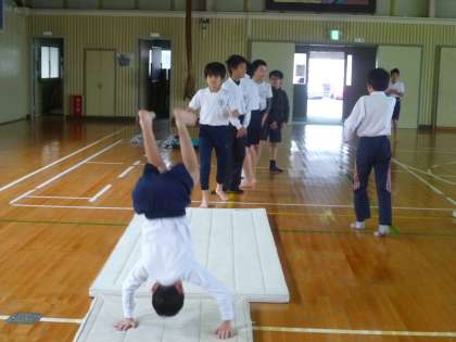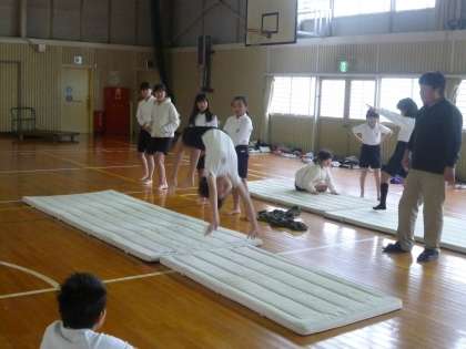 5の2は、体育館でマット運動をしていました。