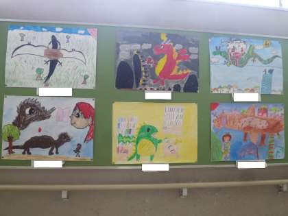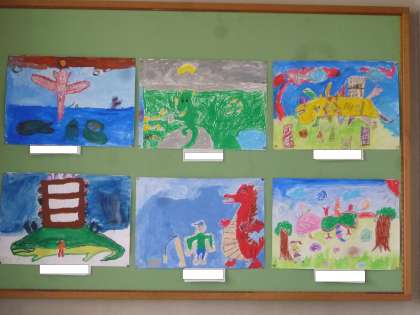 2年生の掲示板には、読書感想画が貼ってあります。ご覧ください。