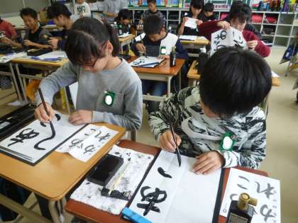 5の2は、書道で、「あこがれ」を練習をしていました。