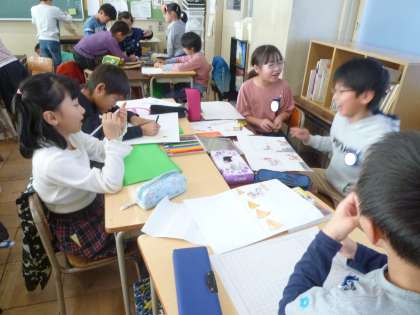 3の2は、総合的な学習の時間の発表の準備をしていました。