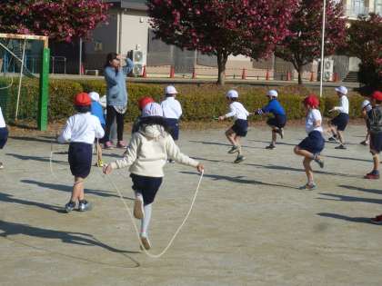 1の3は、縄跳びの練習をしていました。