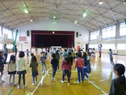 1年生は全員でドッジボールをしていました。
