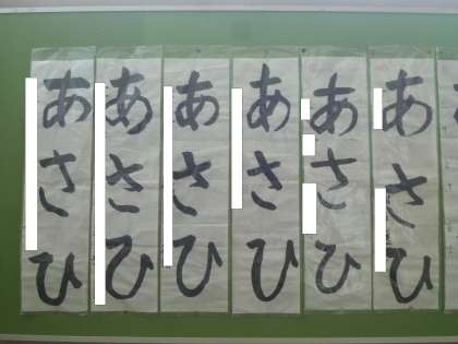 3年生の書き初め作品が、掲示板に貼ってあります。初めて、書き初め用紙に書きました。