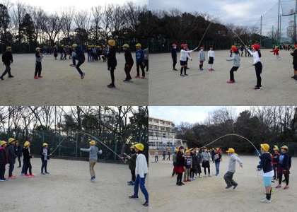 業前体力づくり 公開日 2019/01/21 更新日 2019/01/21 学校行事 今日から、クラスごとに取り組む大縄跳びが始まりました。高学年は、とてもスピーディーに回数を重ねて8の字跳びをしていました。低学年も、少しずつ回転する縄に入れるようになっています。
