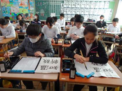 6の1は、毛筆で「温故知新」と練習をしていました。