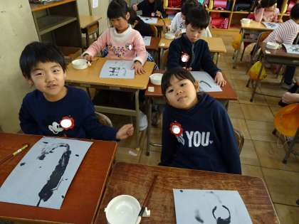 1の1は、毛筆の練習をしていました。