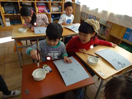 授業の様子「水習字」