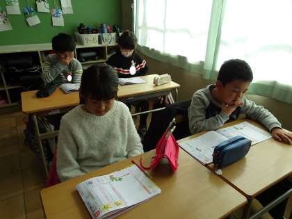 4の3は、漢字の練習をしていました。