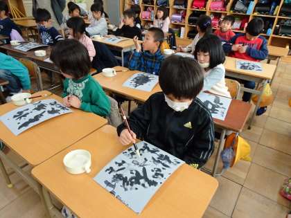 1の2は、書道の時間でした。
