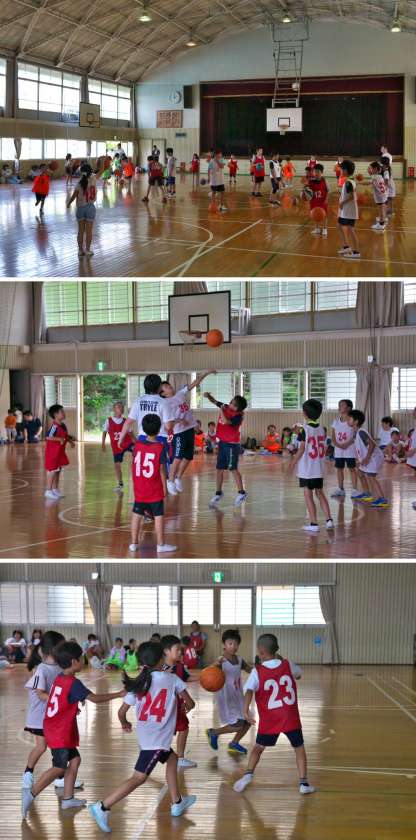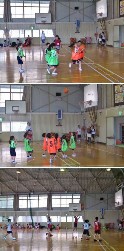22日午後、バスケットボール教室が開催されました。講師の方に、フットワーク、ハンドリング、パス、シュートを教えてもらいながら練習しました。最後に学年別にゲームをして楽しみました。短い時間でしたがバスケットボールに親しむことができました。