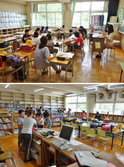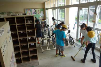 委員会活動の様子です。教室で話し合ったり、片付けや整理整頓、清掃活動をしたりしています。