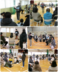 全員 カレーライスを食べ終わりました。今は後片付けに必死です。