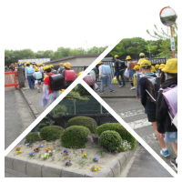 春、校内にはパンジーなどの花々が咲いています。藤の花も咲き始めてきました。(藤棚...