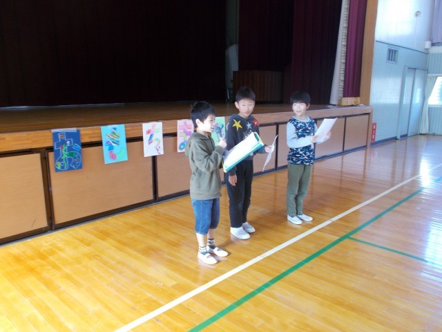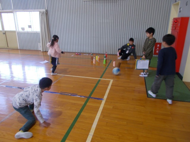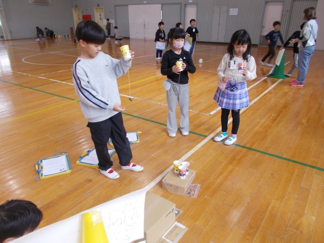 3・4時間目に1年生を招待して「おもちゃまつり」を開きました。8つのお店「たのしいがっきやさん」「たのしいめいろやさん」「ミニミニラウンド1」「ハッピーくじ」「しゅりけんしゃてき」「わなげランド」「サッカーや」「けんだまパークランド」に1年生がお客さんとしてきてくれて、2年生はとってもうれしそうでした。本番になって「あっ!〇〇を作っておけばよかった」などとあわてて作り始めたり、実際にやってみると1年生にはむずかしいようだと感じ、ルールを変更したりしているお店もありました。その場で考えて、工夫できる姿もすてきです。