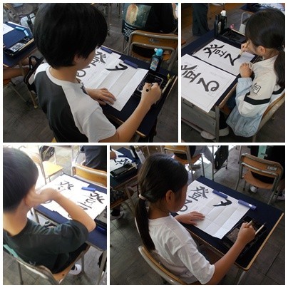 習字や図工などでは、一人一人よりよい作品を作り出そうとみんな頑張っています。