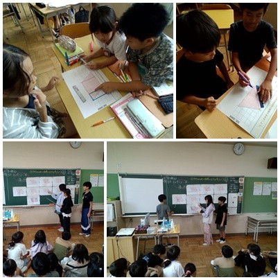 算数の時間では、班の友達と協力して平行四辺形の面積の求め方を考えました。上手に話し合うことができました。