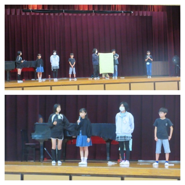 今朝は図書委員会の皆さんによる読書集会がありました。おすすめの本や、読書を励行するためのスタンプラリーのお話がありました。